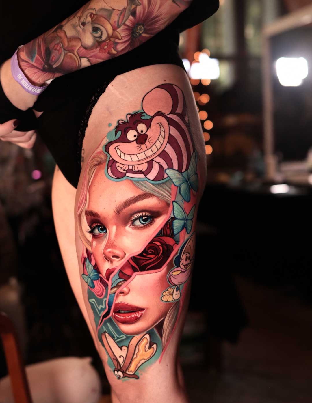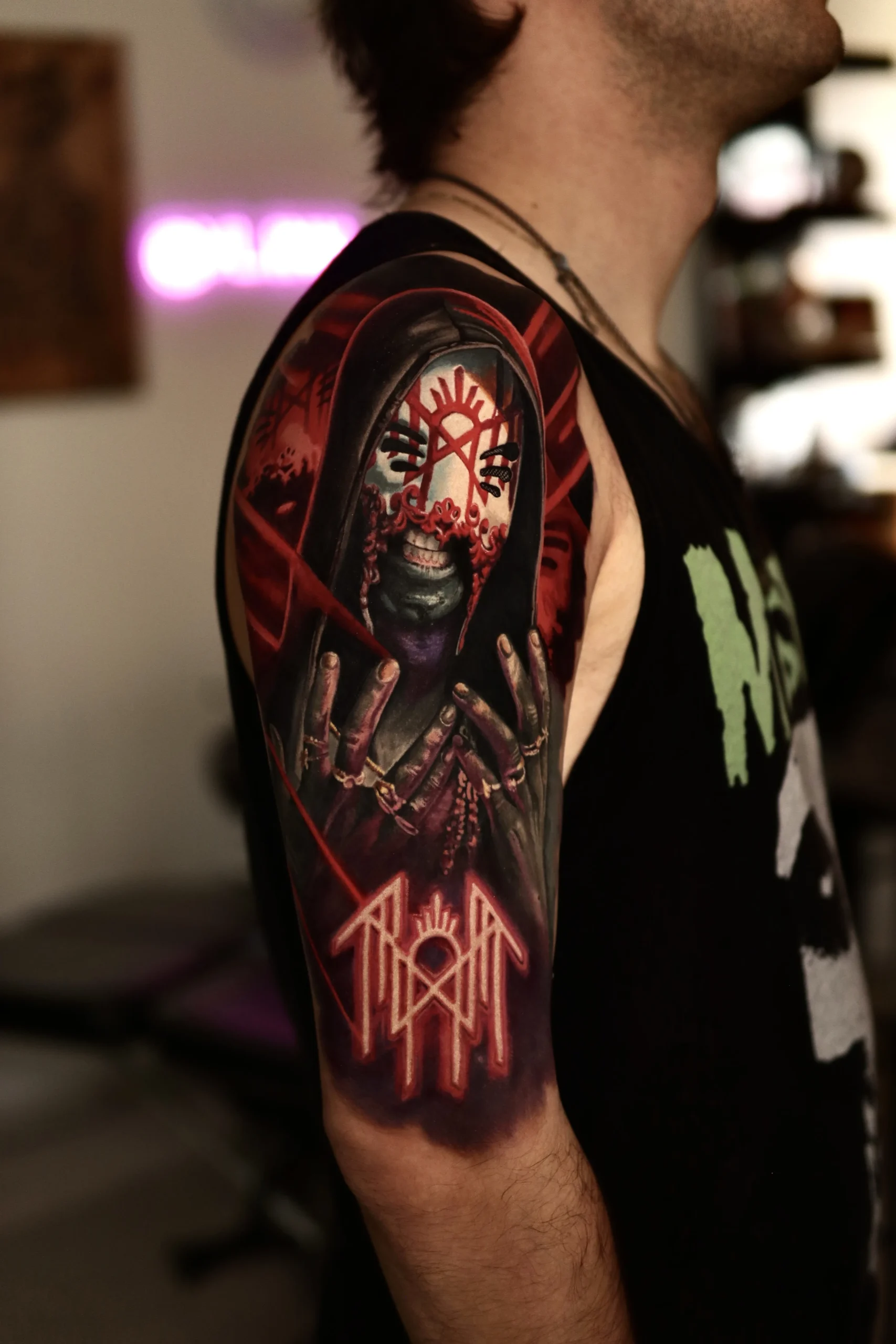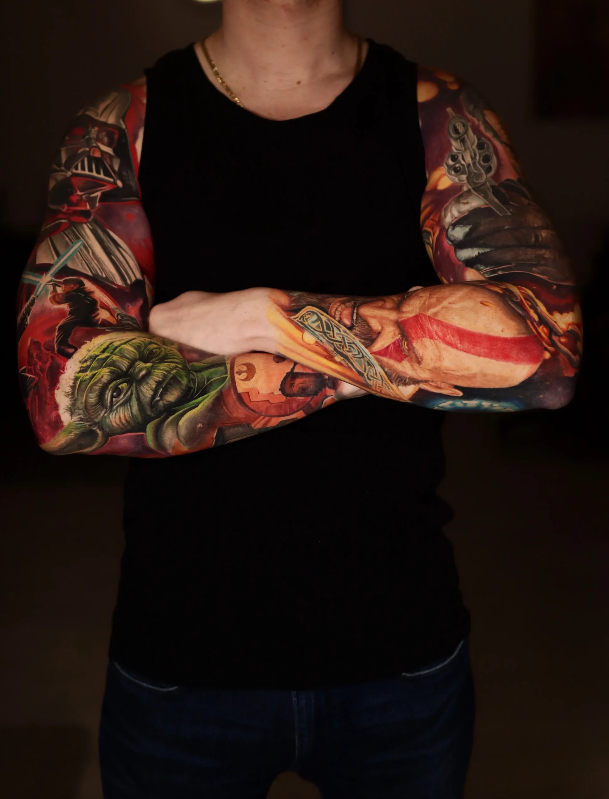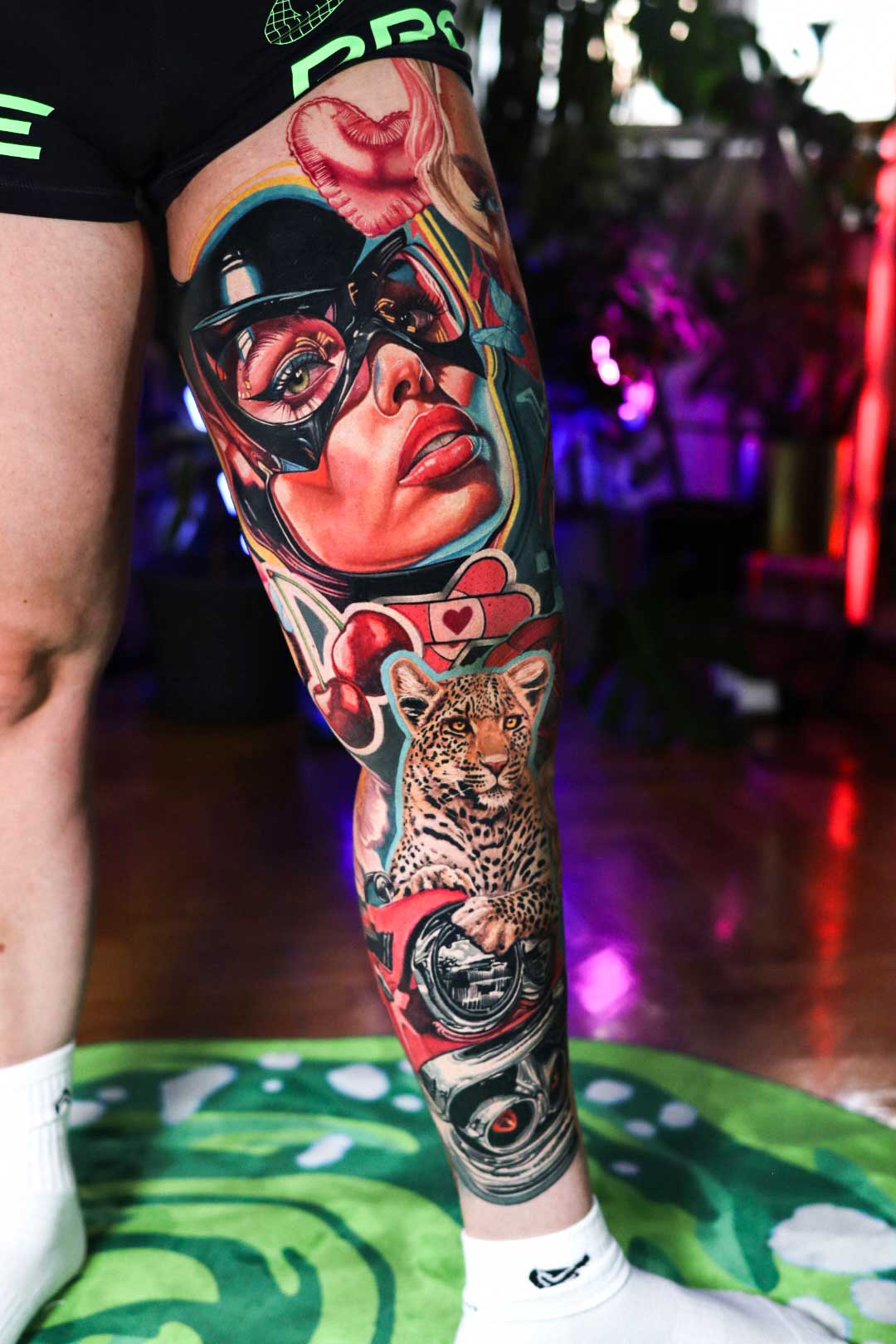 Levente Vacsi, a Hungarian tattoo artist, is recognized for his striking color realism tattoos. Self-taught at first, he refined his craft over the years and built an international reputation. Constantly evolving, he continues to push the boundaries of his artistic expression.