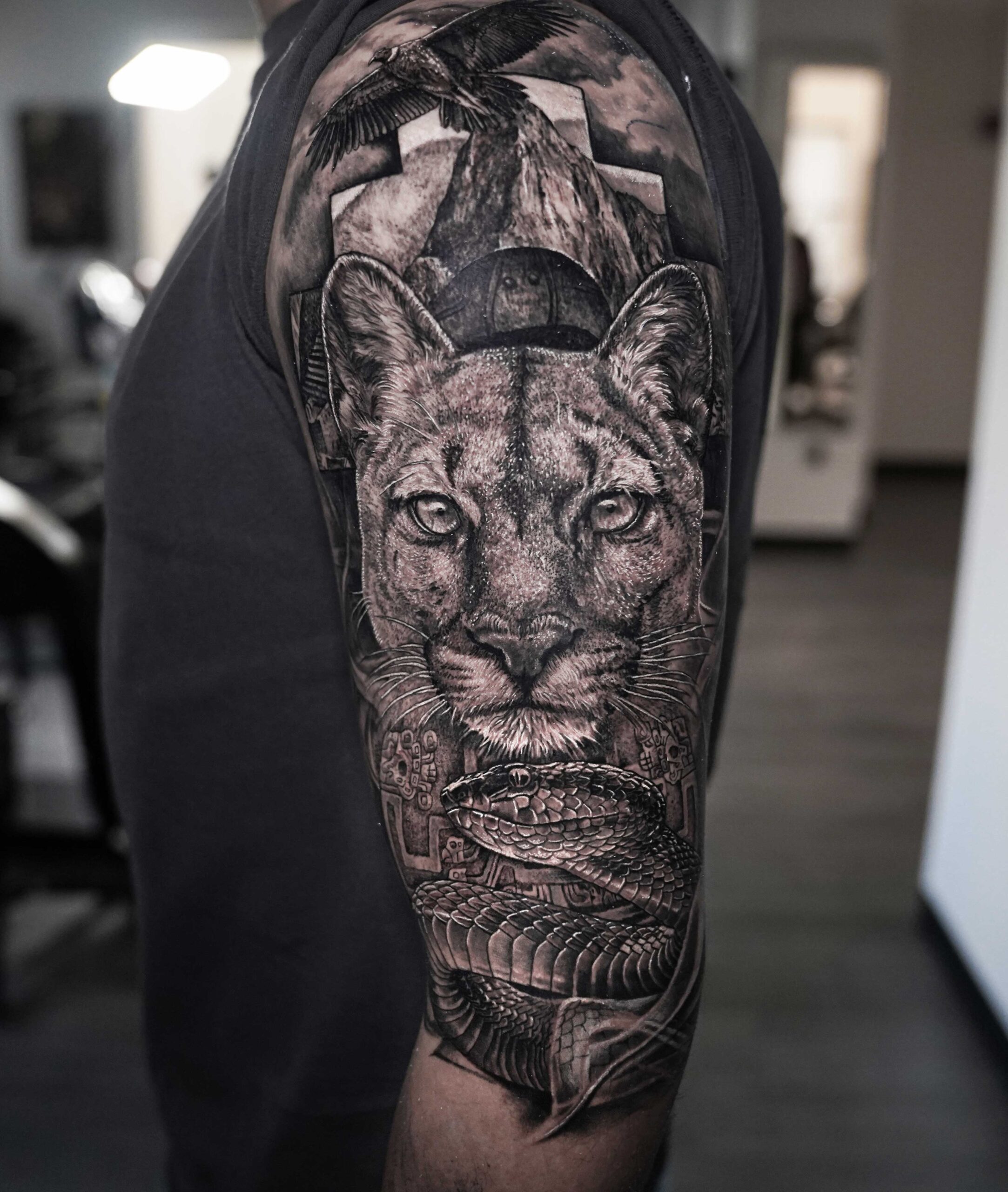 Black-and-gray tattoos use a timeless palette of black ink diluted to create smooth gradients and soft shading. This style delivers depth, contrast, and detail without the use of color, making it perfect for portraits, realistic scenes, and intricate designs. Known for its elegance and longevity, black and gray tattooing offers a classic, versatile look that stands the test of time.